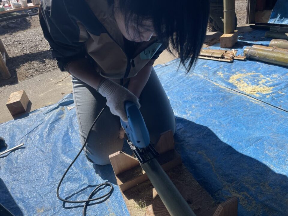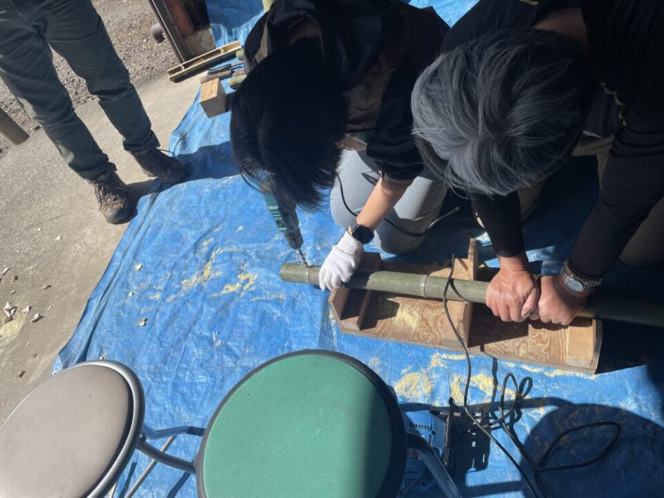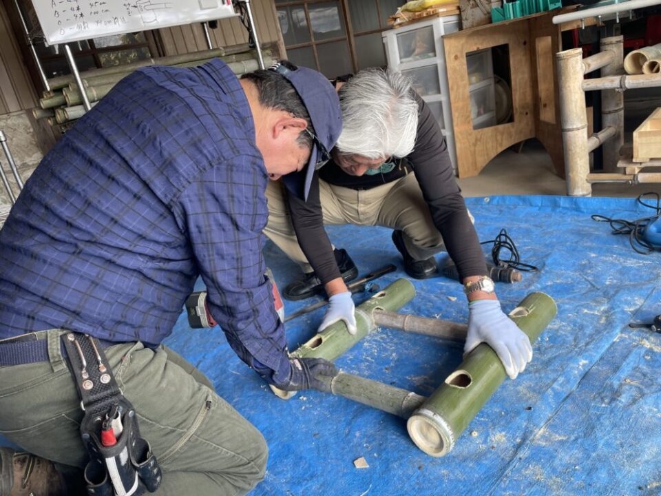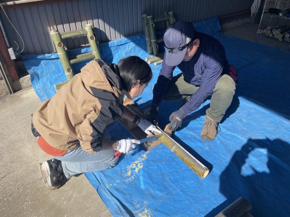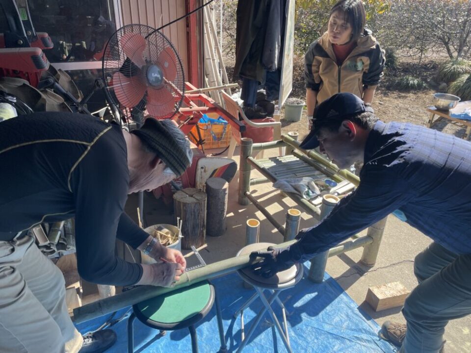竹取倶楽部では初回となる 「竹ベンチづくりワークショップ」 を開催しました。