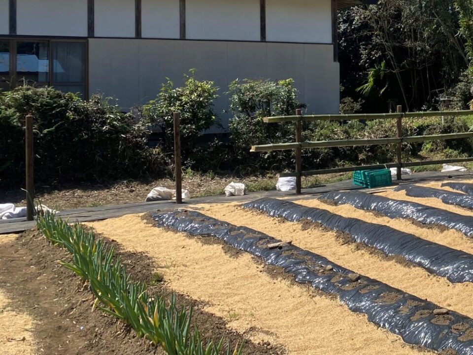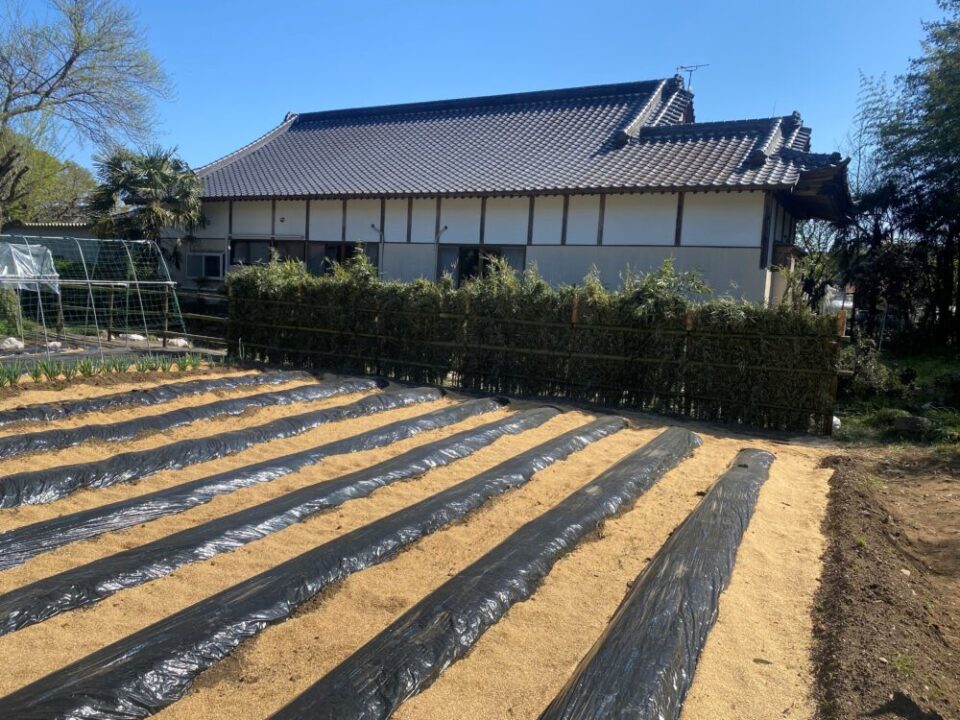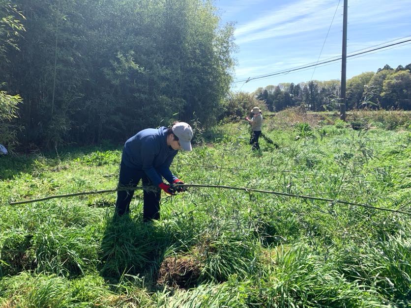 こんにちは❗なかがわ里山元気倶楽部の山下です。4月12日(日)に「竹の伐採」と「竹垣づくり」の活動を行いました。今回は、元気ハウスとお隣との境界に、銀閣寺のような「竹穂垣」をつくることを目標に取り組みました。🎋
