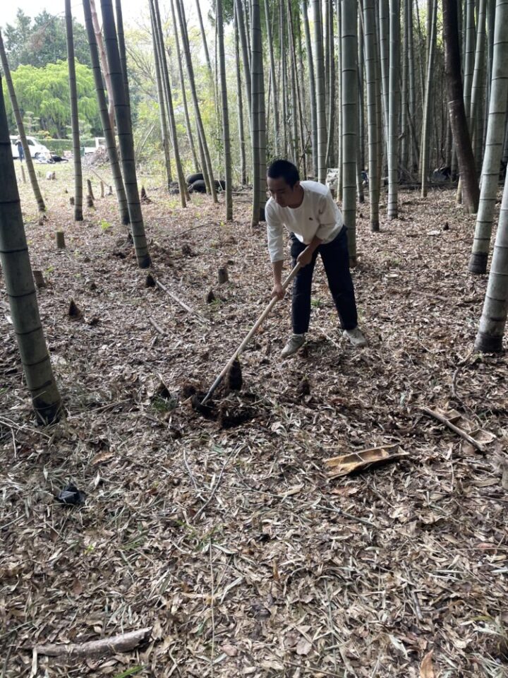昼食後は午後の活動前に筍掘りをしました。