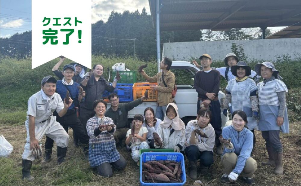 耕作放棄地で育てたさつまいもの収穫をみんなで行います。おいもほりです♪