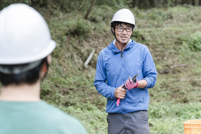 ここで、活動の受け入れをしてくださる『たけのわ町田本郷』事務局の野原さん、『NPO法人トチギ環境未来基地』代表理事の塚本さん、栃木県農村振興課の森島さん、元自治会長の地域の方にご挨拶をいただき、他運営メンバーと参加者も挨拶をし、意気込みを語った後は、早速竹林整備活動へ。