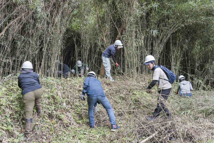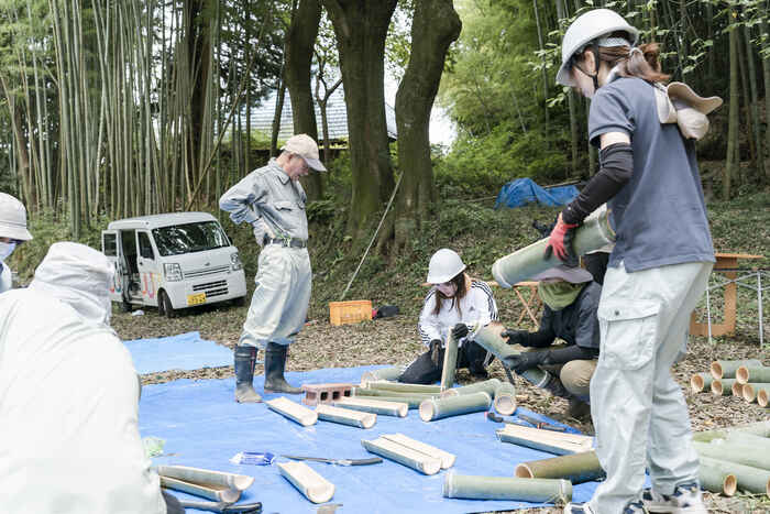 今回は地域の方も交えて活動することで、土地のお話や竹林伐採のコツなどを教えていただくことができ、和気藹々と学び楽しみながら作業をするみなさんの様子が印象的でした。