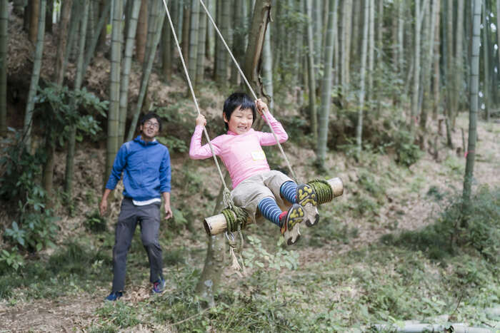 みなさんで切って磨いた竹の食器を使って、緑豊かな竹林に囲まれて食べるご飯はまさに絶品…!