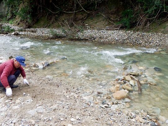 魚たちは石の隙間を好み産卵場所や隠れ家にします。そのような場所をたくさん作りたいと思っていますが、人手が足りず、なかなか作業も進みません。小さなお子さんでも持てる石を渓流内に積む作業です。皆さんの参加をお待ちしております。