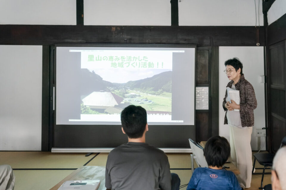 次に”里山大木須を愛する会”の代表理事である大貫 いさ子様より、プロジェクターを用いて施設の概要についてご紹介いただきました。