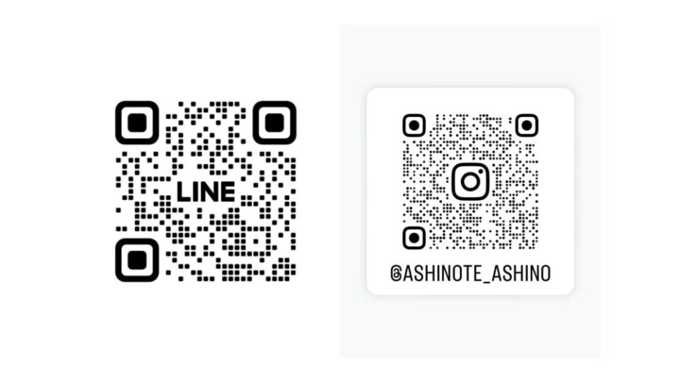 - SNS:Instagram @ashinote_ashino / 公式 LINE @ashinote でメッセージでも OK!!