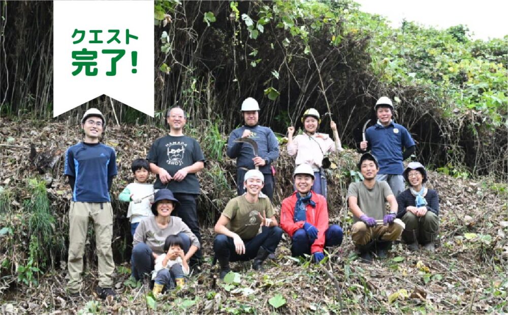 今回が初めてのクエストです。ぜひ一緒に、田んぼと川の繋がりを感じる、水源林の森の整備を行いましょう。