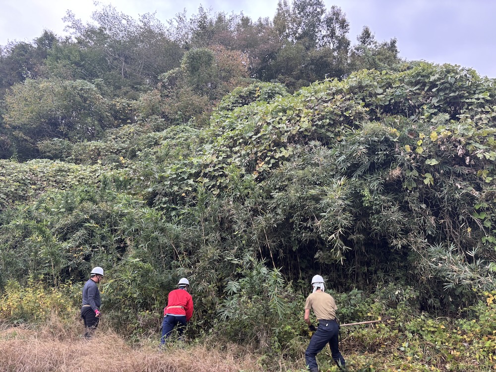一方で、篠竹刈りの大変さも身をもって感じました。今回の作業で一定の篠竹は伐採できたものの、まだまだ手が入っていない場所が多く、山を維持することの難しさを思い知らされました。山や竹林は、人の手が入らないとあっという間に荒れ、危険な状態になってしまうことを目の当たりにし、改めて管理の大切さを実感しました。