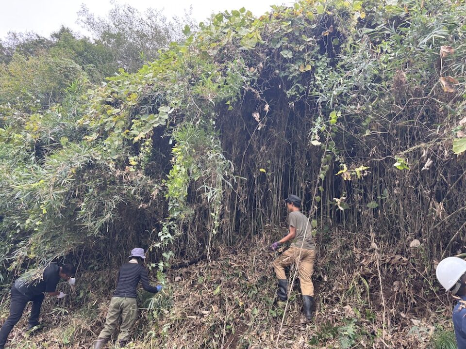 さらに印象的だったのは、初対面とは思えないほどのチームワークの良さです。力がある人は前線で篠竹を切る役を担い、折れた篠竹を回収する係、枝を細かくしてまとめる係など、自然と役割分担が生まれ、時間が経つほど作業効率が上がっていきました。その姿はまさに「One-Team」という言葉がぴったりでした。