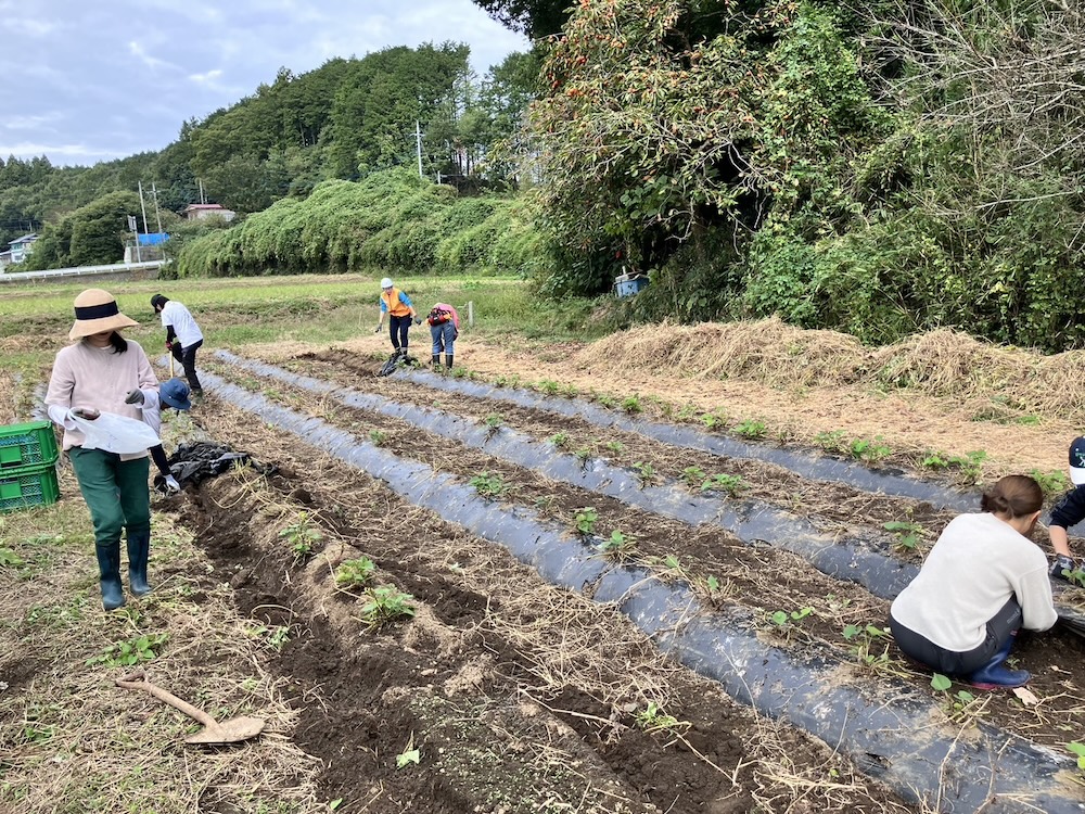 まず初めに行った活動が芋ほり体験。私は幼稚園ぶりの芋ほりです。 最初にマルチをはがして、芋ほり開始です。