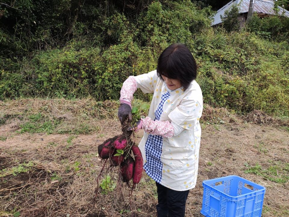 お昼ごはんは具だくさんのけんちんうどん、大学芋、春雨サラダをご馳走になりました。収穫のお手伝いしかしていないのに、3品も手作りのご飯をお腹いっぱい食べさせてもらえるなんて、大変ありがたかったです。