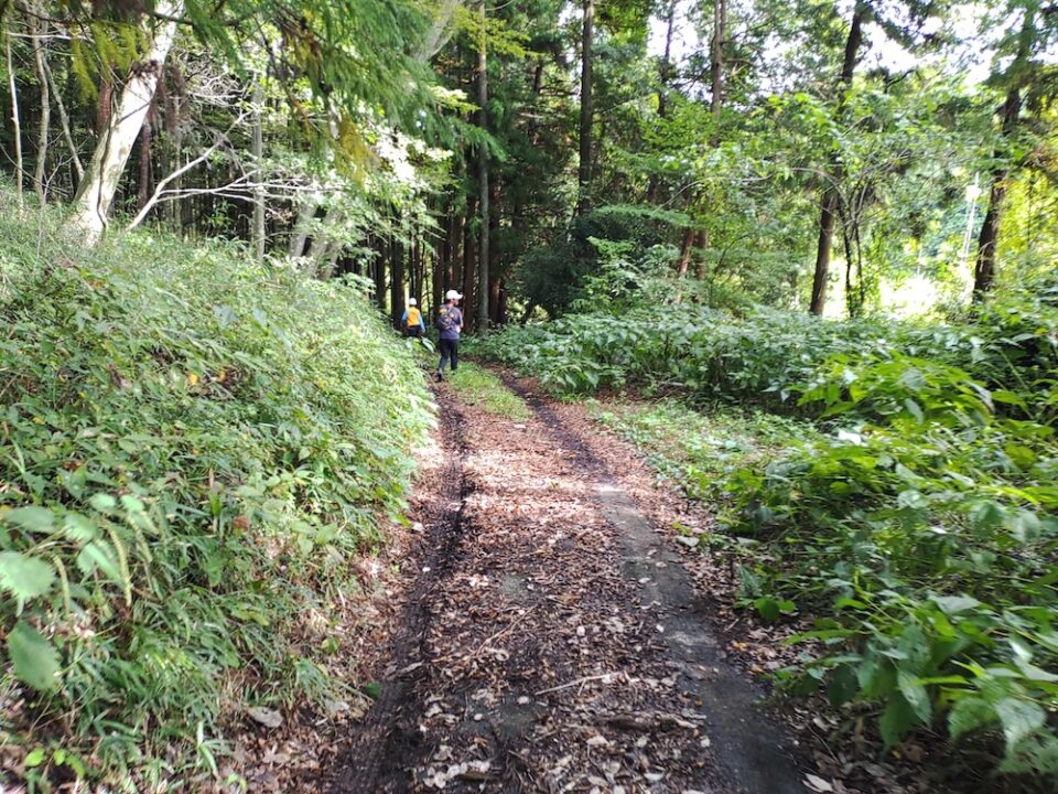 細い木の枝が通路に飛び出してきていたり、直径1センチくらいの篠竹が茂っていたりするので、これを鎌や鋸で切っていくとのこと。