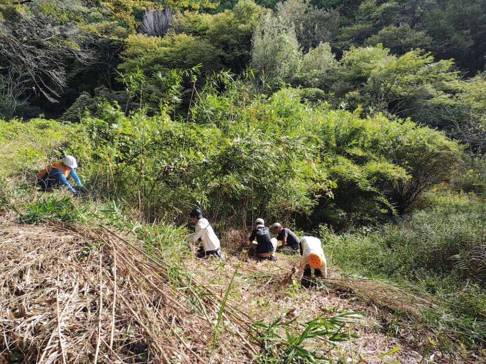 私は鋸でやってみましたが、なかなか上手く切れません。それでも、山というのがどうやって手入れされているのか、細い木の枝や篠竹がどれほど頑丈であるかということがわかって嬉しかったです。